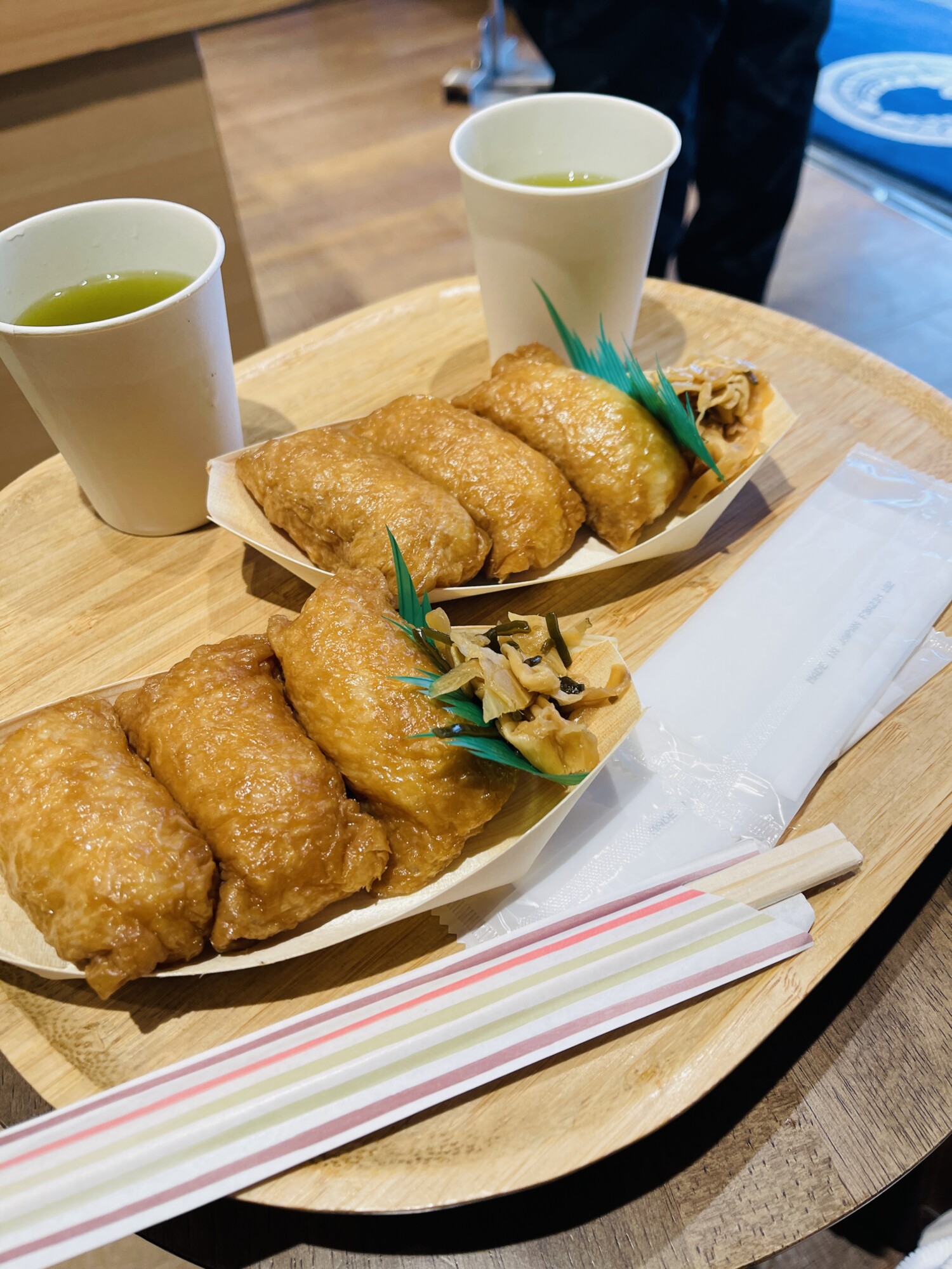 小田原ミナカの店先で、お稲荷さん。ジャンボシュークリームとコーヒで軽く済ませます。